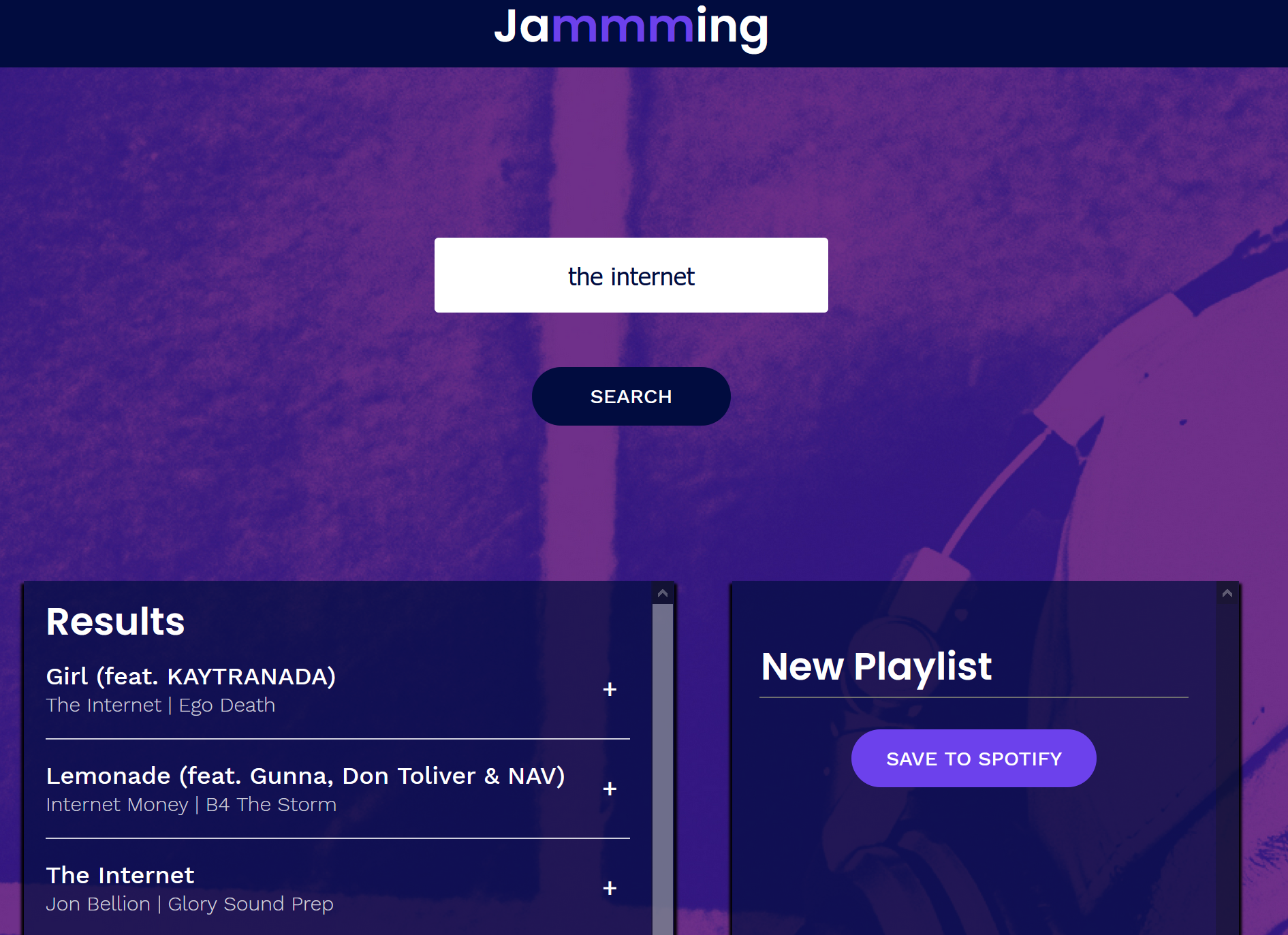 Using their Spotify profile, users can create playlists. Technologies used: React.